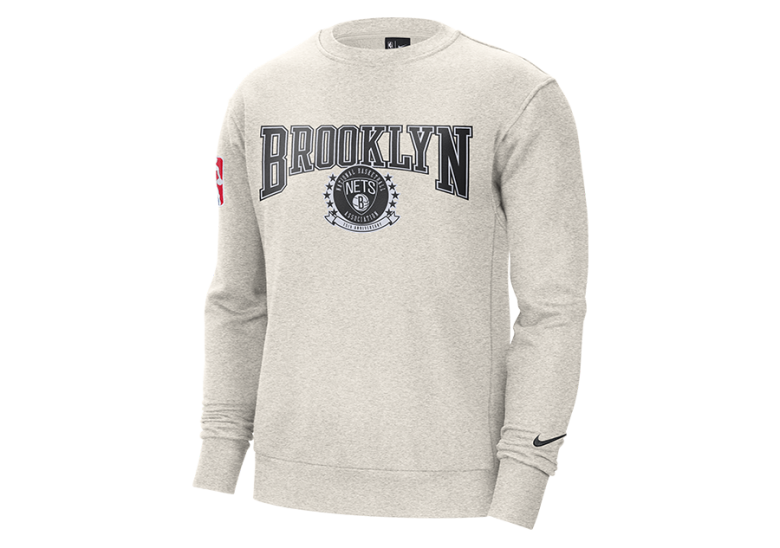 NIKE NBA BROOKLYN NETS FLEECE COURTSIDE 75 CREWNECK BIRCH HEATHER